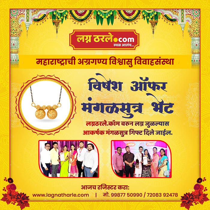 आमच्या संस्थेतर्फे जी काही लग्न जुळली आहेत किंवा यापुढेही जुळतील अशा प्रत्येक जोडप्यास लग्नठरलें.कॉम तर्फे आकर्षक "सोन्याचे मंगळसूत्र" भेट म्हणून देण्यात येते